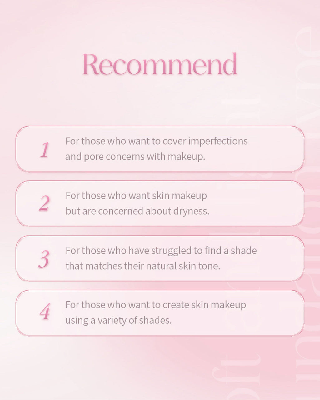 - How to Use: Gently press the puff into the cushion and tap evenly onto the face, starting from the center and blending outward. Build coverage as desired.