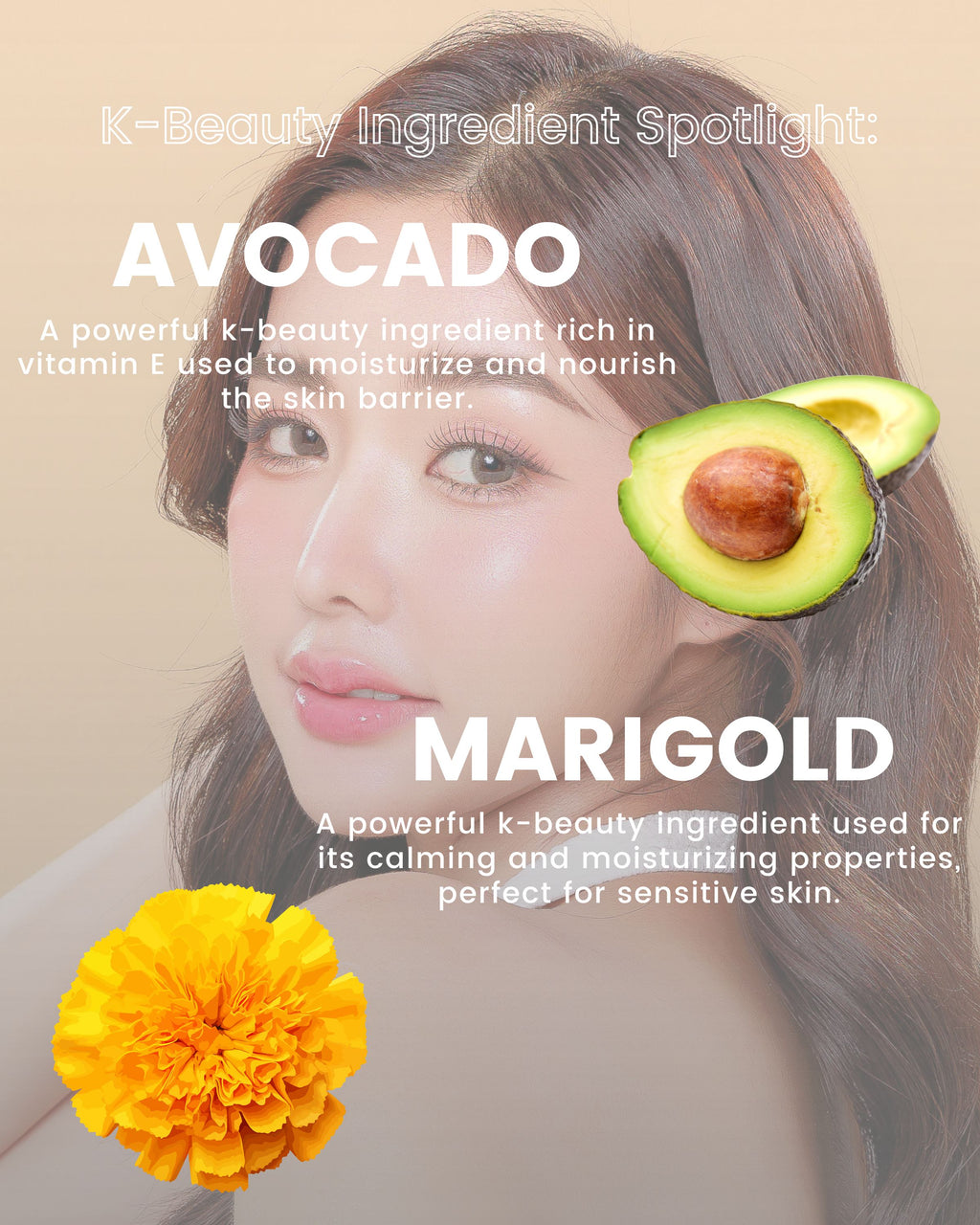 • KEY INGREDIENTS: Marigold Flower Oil – Calms and moisturizes sensitive skin. Sunflower Seed Oil – Brightens skin. Avocado Oil Extract – Rich in vitamin E. Camellia Oil Extract – Brightens and soothes sensitive skin.