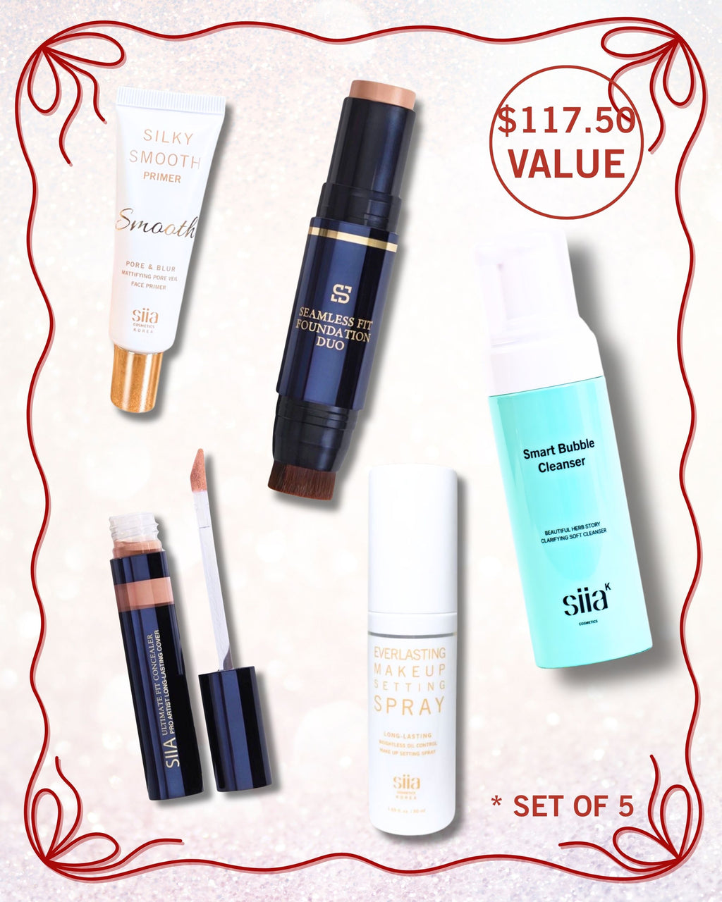 • HIGHLIGHT: A complete complexion-perfecting set infused with Korean skincare — primes, covers, sets, and cleanses for hydrated, smooth, and radiant skin all day.