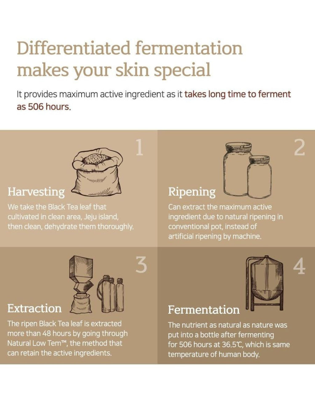 - 🍵 Infused with Fermented Kombucha Extract (Yeast/Xylinum/Black Tea Ferment), this ampoule features Natural Low Tem™ — our proprietary low-temperature extraction method using clean Jeju black tea 🍃 fermented for 506 hours ⏳, delivering deep nourishment for healthier-looking skin ✨.