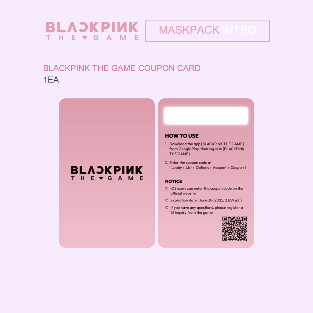 - LENTICULAR BOX Includes: MASKPACK 7EA, STICKER 1EA (RANDOM), PHOTOCARD 1EA (RANDOM), GAME COUPON 1EA